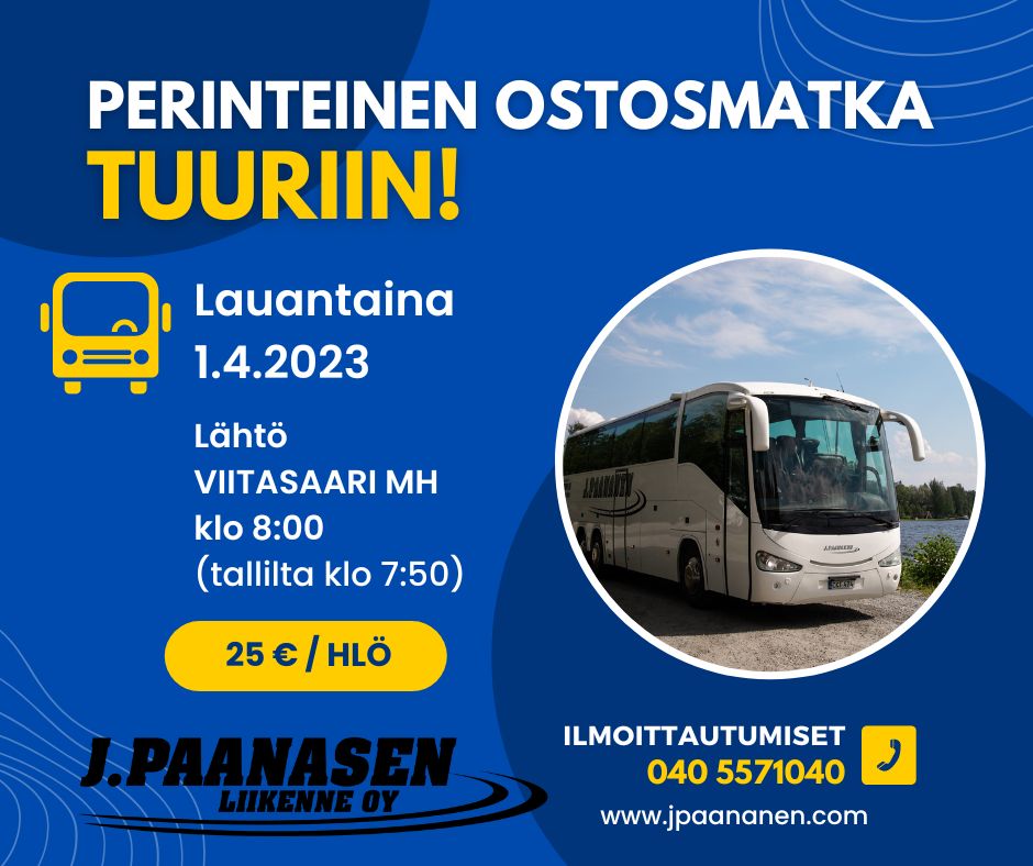 Perinteinen Tuurin kyläkaupan ostosmatka – joku voisi jopa sanoa elämysmatka – järjestetään 30.11.2024.